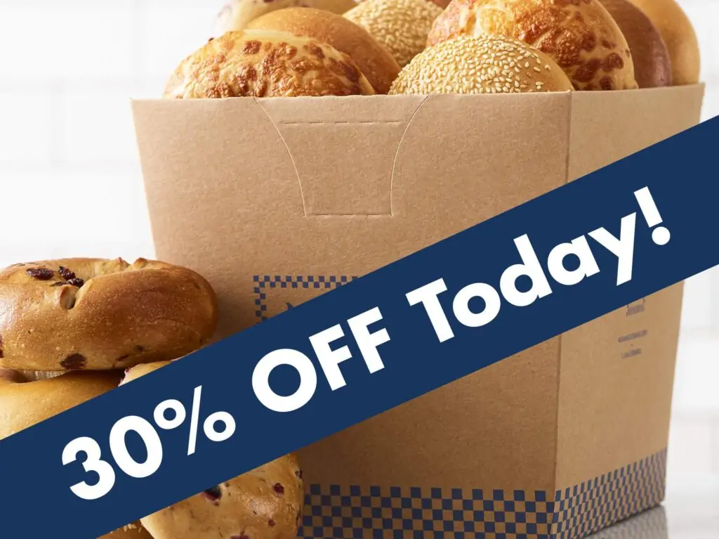 Get a Baker’s Dozen Bagels for 30% off on Mondays.